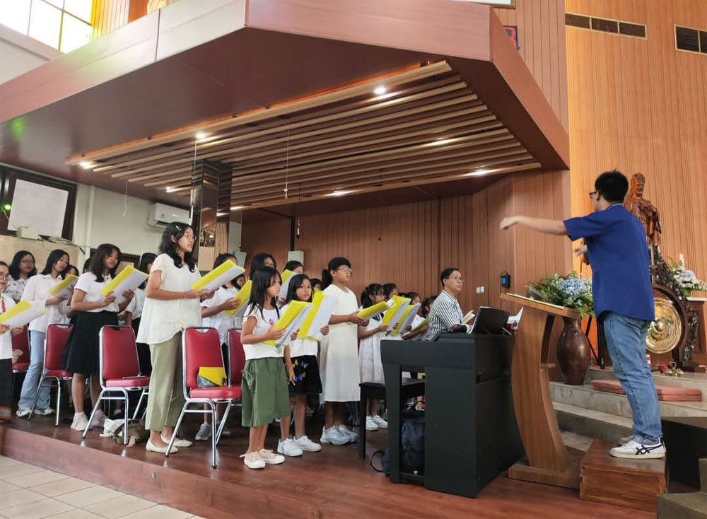 Purwokerto – Usia anak dan remaja adalah saat yang penting untuk menanamkan pendidikan karakter dan memberi dasar pengetahuan yang kokoh, termasuk dalam hal pelayanan Paduan Suara. Angel’s Voice adalah Paduan Suara anak dan remaja Paroki Katedral Purwokerto yang didirikan sejak Oktober 2024. Guna menanamkan karakter kelompok paduan suara dan meningkatkan kualitas vokal, kami mengadakan Children’s Choir Workshop pada tanggal 30-31 Agustus 2025 dengan narasumber Gregorius Gerrald Pratomo, MMus. Beliau adalah lulusan S3 Musik dari Jerman, anggota Komisi Liturgi KWI, dan Dosen Universitaa Katolik Parahyangan.
