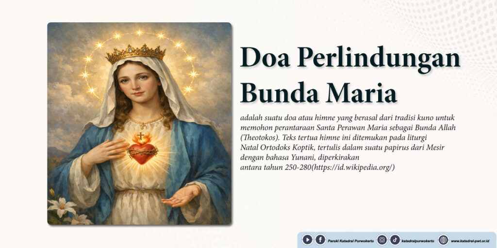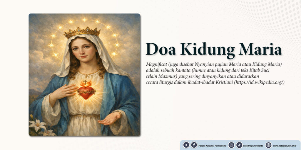 Jiwa Kristus, kuduskanlah kami.Tubuh Kristus, selamatkanlah kami.Darah Kristus, sucikanlah kami.Air lambung Kristus, basuhlah kami.Sengsara Kristus, kuatkanlah kami.Yesus yang murah hati, luluskanlah kami.Dalam luka-luka-Mu, sembunyikanlah kami.Jangan kami dipisahkan dari-Mu, Tuhan.Terhadap seteru yang curang, lindungilah kami.Di waktu ajal, terimalah kami.Supaya bersama para kudus kami memuji Engkauuntuk selama-lamanya. Amin. Anima Christi Ánima Christi, sanctifica me.Corpus Christi, salva me.Sanguis […]